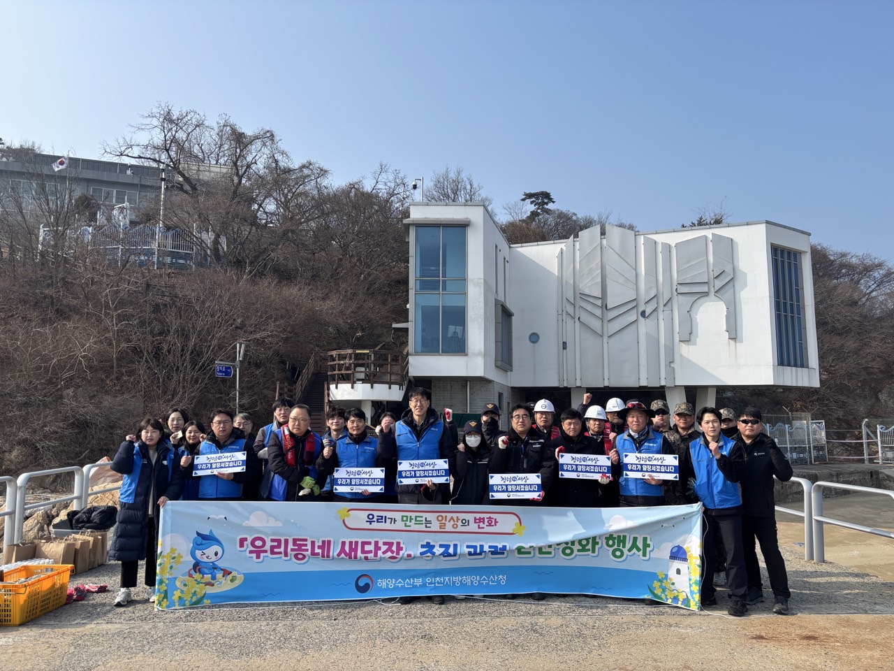 이번 활동은 지난해부터 범정부 차원에서 추진 중인 “대한민국 새단장”의 일환으로 “고운 손길, 아름다운 마을, 행복한 우리-우리동네 새단장”이라는 슬로건 아래 진행됐다. 인천지방해양수산청을 비롯해 인천해양경찰서, 인천해역방어사령부, 인천항만공사, 해양환경공단 인천지사 등 약 40명이 참여했다.